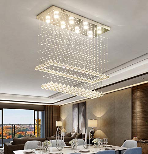 Cheapest 🛒 Moooni Modern Rectangular Crystal Chandelier Ceiling Lighting Fixture Raindrop Pendant Flush Mount Light Rectangle Chandeliers for Dining Rooms Kitchen L 47x W 12x H 31.5 Reviews